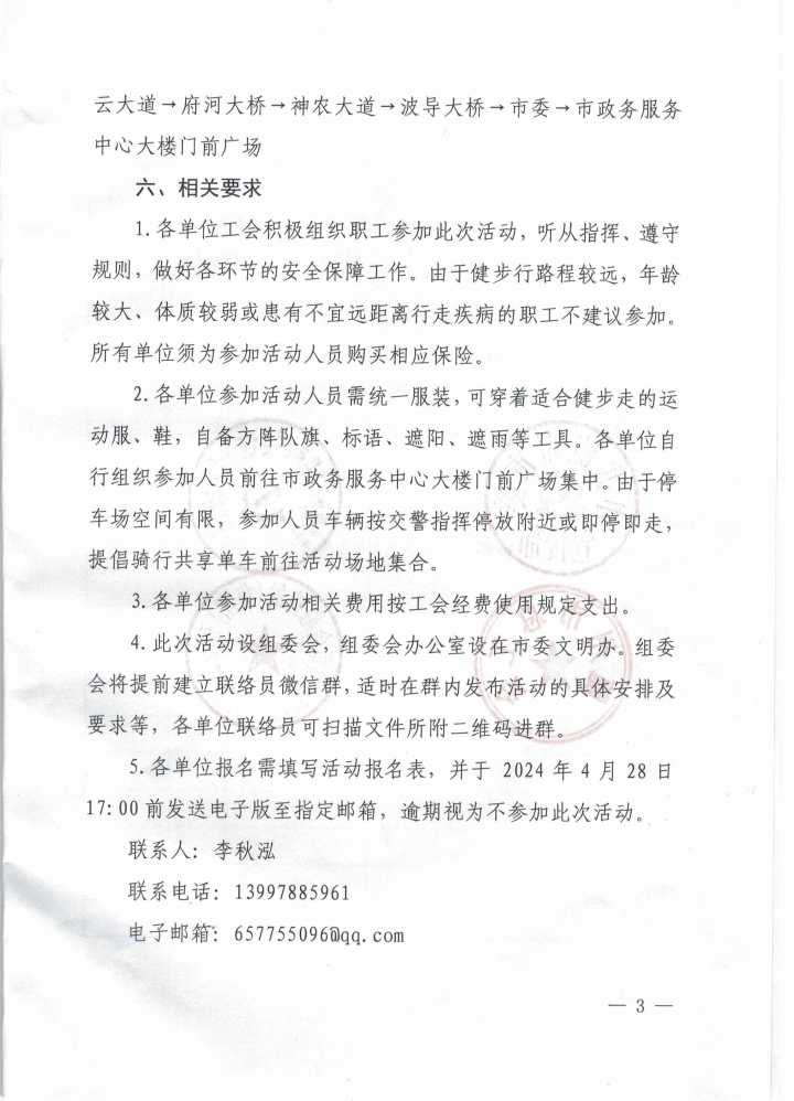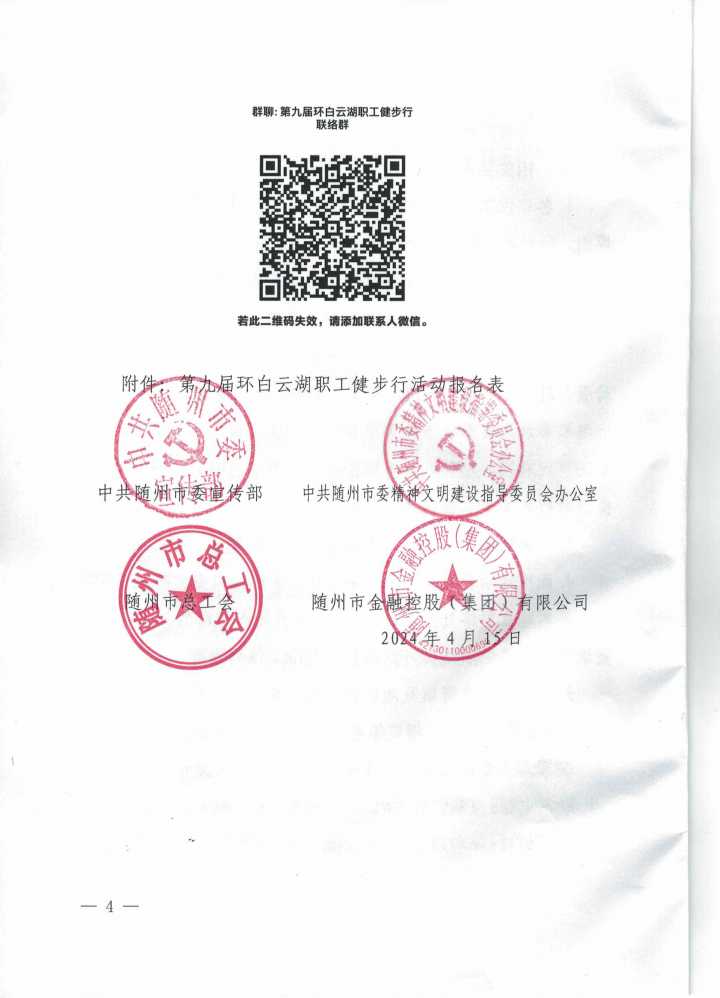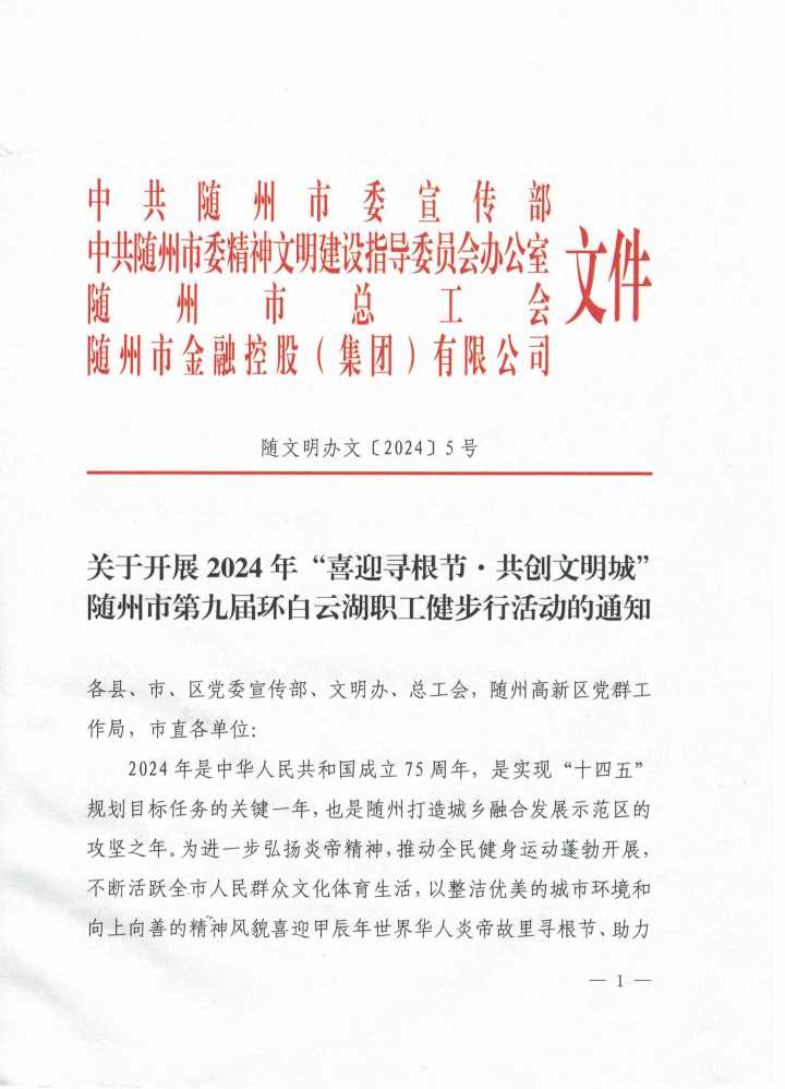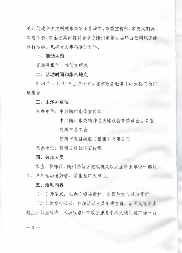 关于开展2024年“喜迎寻根节 共创文明城”随州市第九届环白云湖职工健步行活动的通知