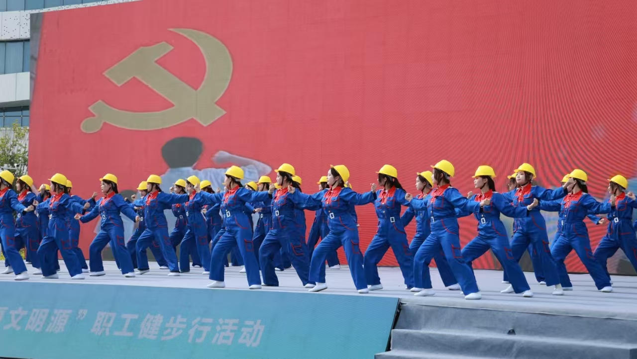 开幕式上,我校师生演绎的开场舞《咱们工人建设新时代》,展现了我校大学生青春热情的精神风貌,为全场4000余名职工呈现精彩的视觉盛宴。
